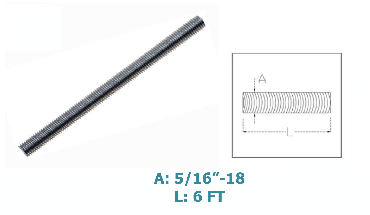 - Stainless Steel Fully Threaded Rod, Bar Stud Screw Length Silver 6 Ft. Long