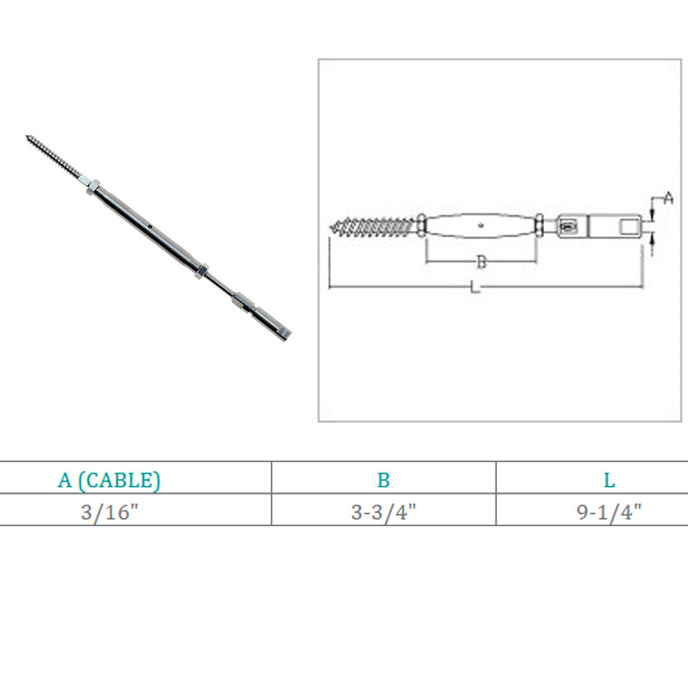 - Stainless Steel Marine Swageless & Lag Turnbuckle For 3/16" Cable Wire Rope