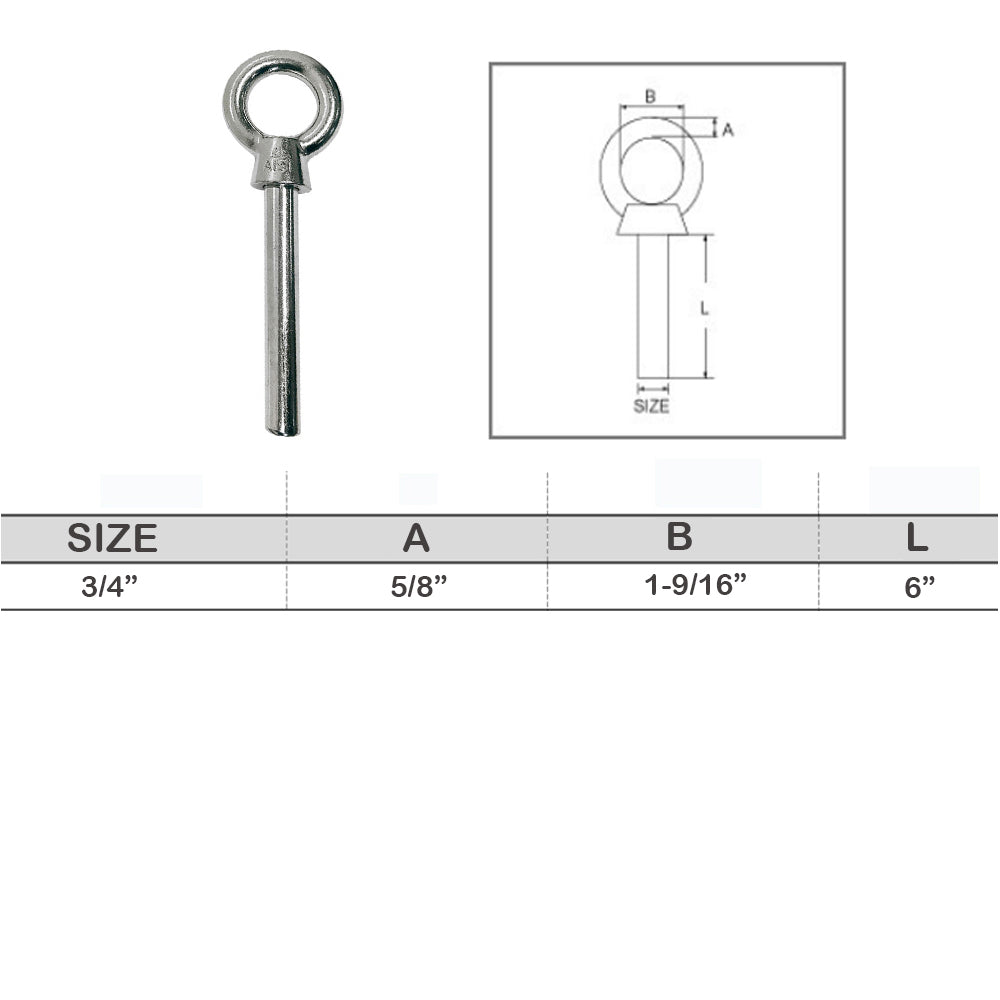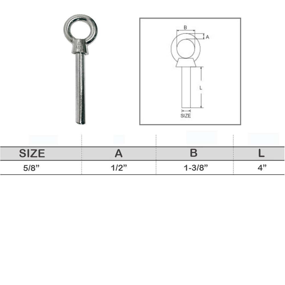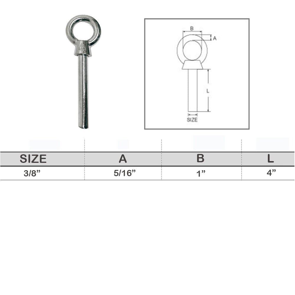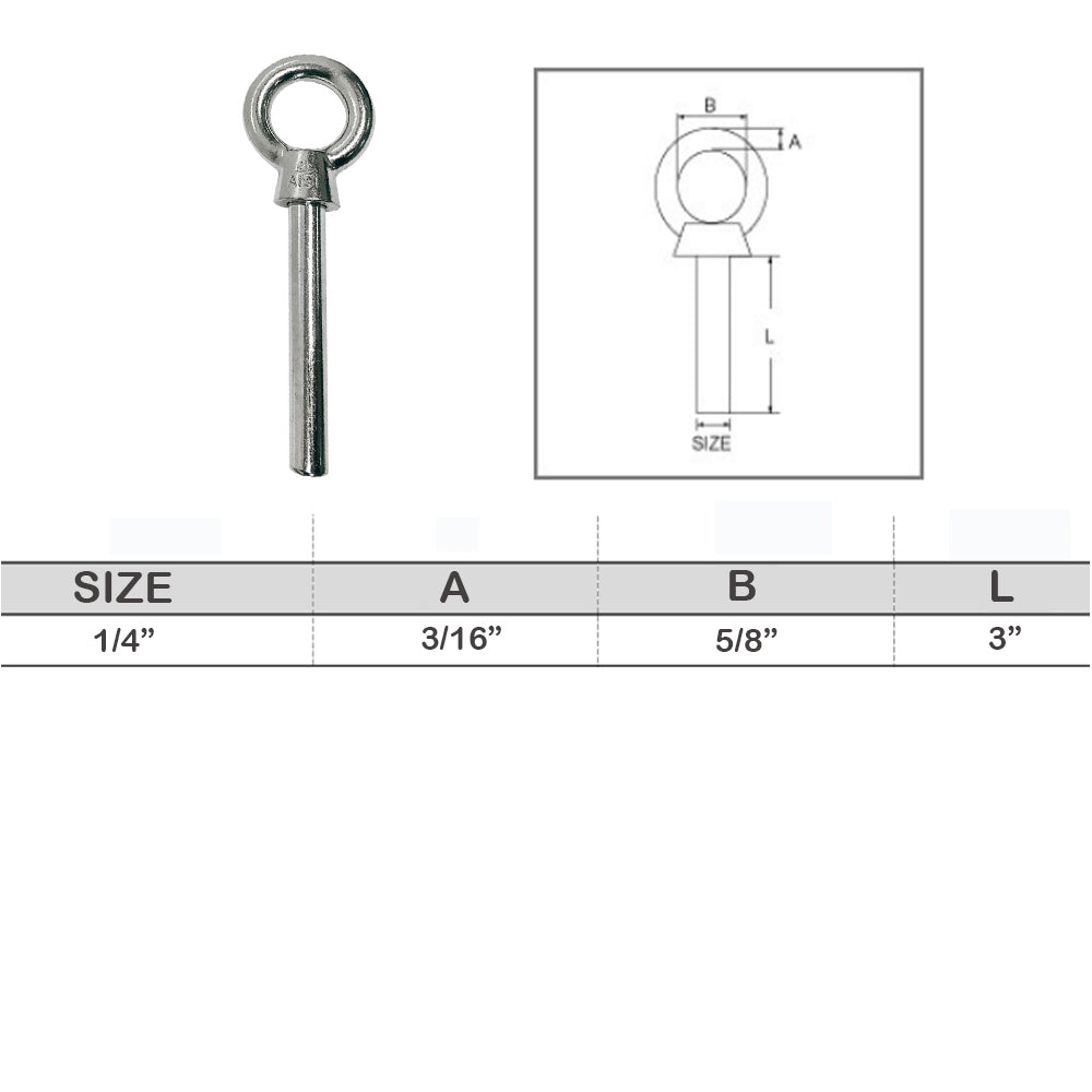 - Stainless Steel T316 Eye Bolt Marine Non-Threaded Shoulder Eyebolt Rivet Bolt