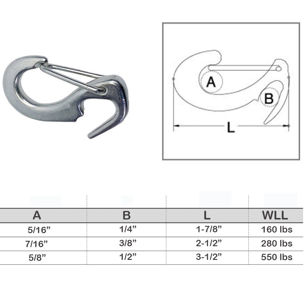 - Stainless Steel T316 Open End Spring Snap Tack Hook, Sail Snap Hook