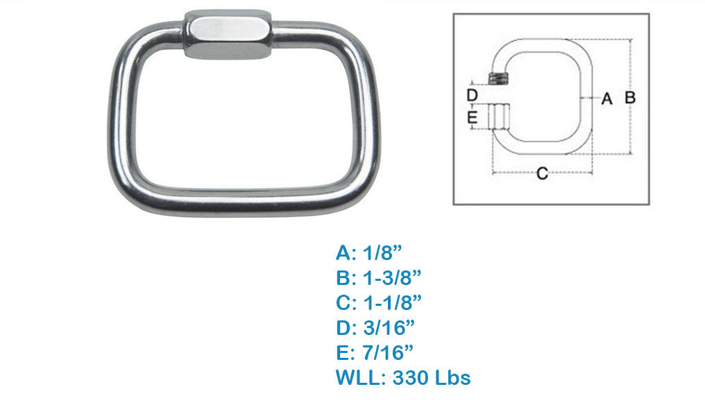 - Stainless Steel T316 Square Quick Link Chain Connectors, Locking Carabiners Marine Grade