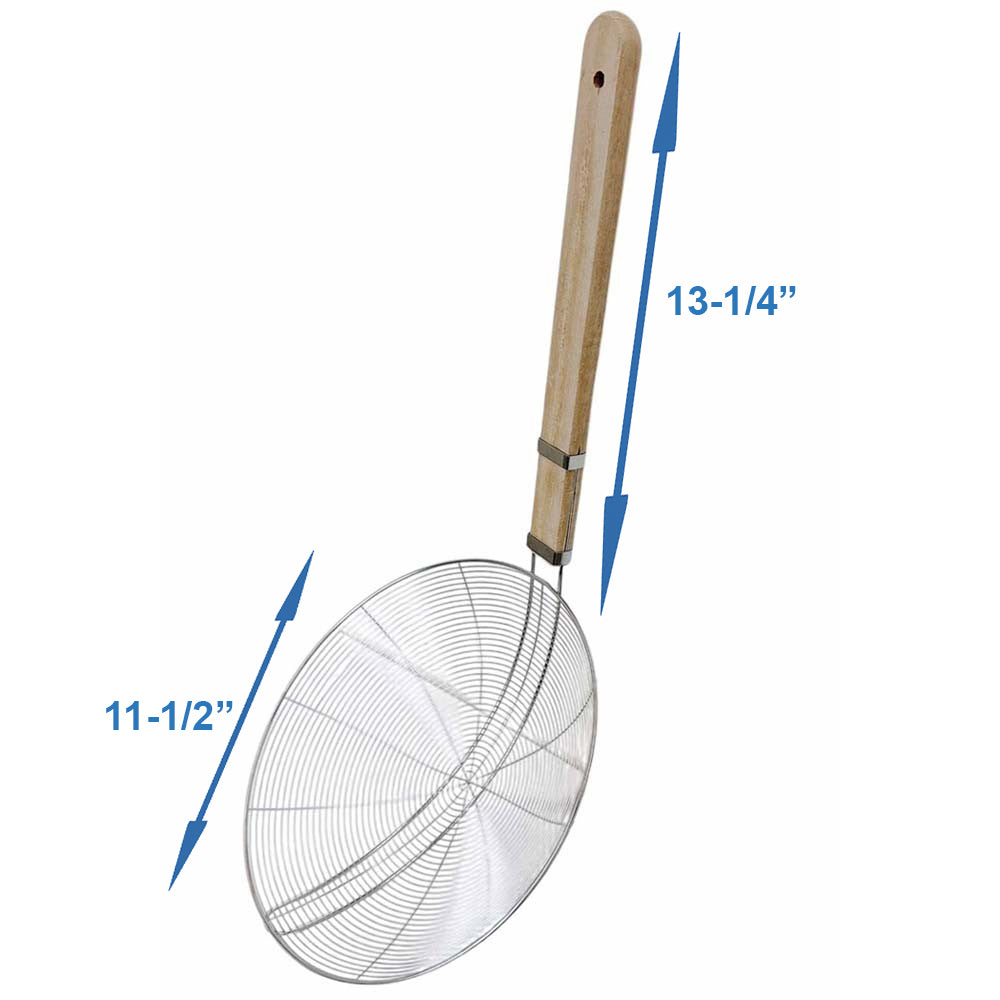 - This wire skimmer with a spiral mesh design is perfect for a variety of tasks in the kitchen. Use it for draining noodles or pasta, blanching vegetables, deep frying, and so much more.