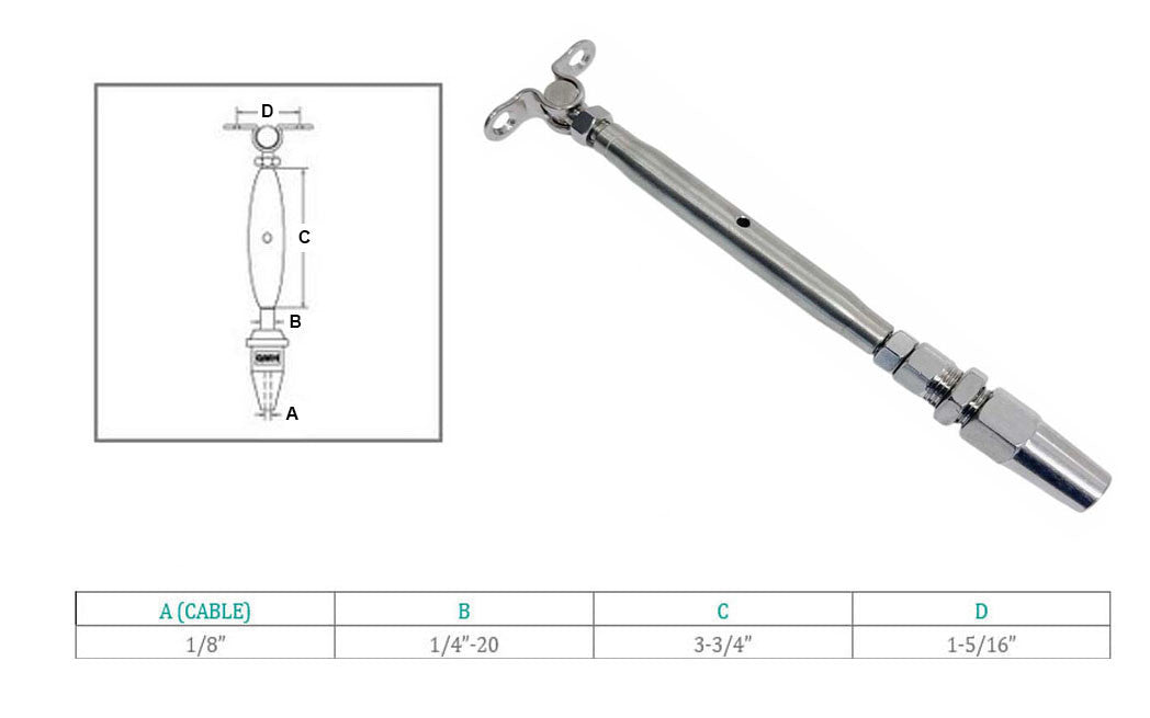 T316 Marine Grade Stainless Steel 1/8" Cable Deck Toggle & Swageless Turnbuckle