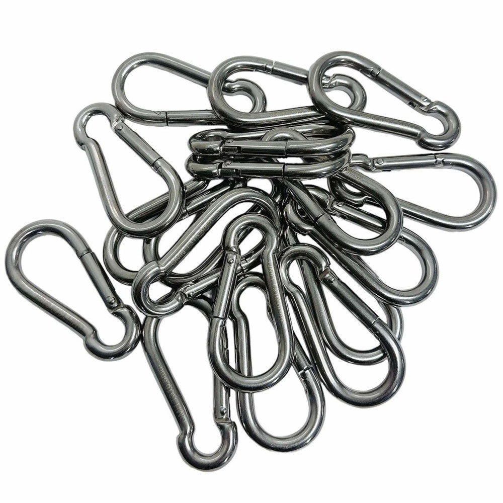 T316 Stainless Steel 5/16" Carabiner Spring Snap Hook Marine 280 Lbs WLL 20 Pcs