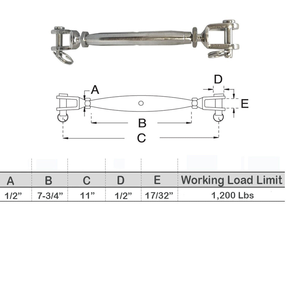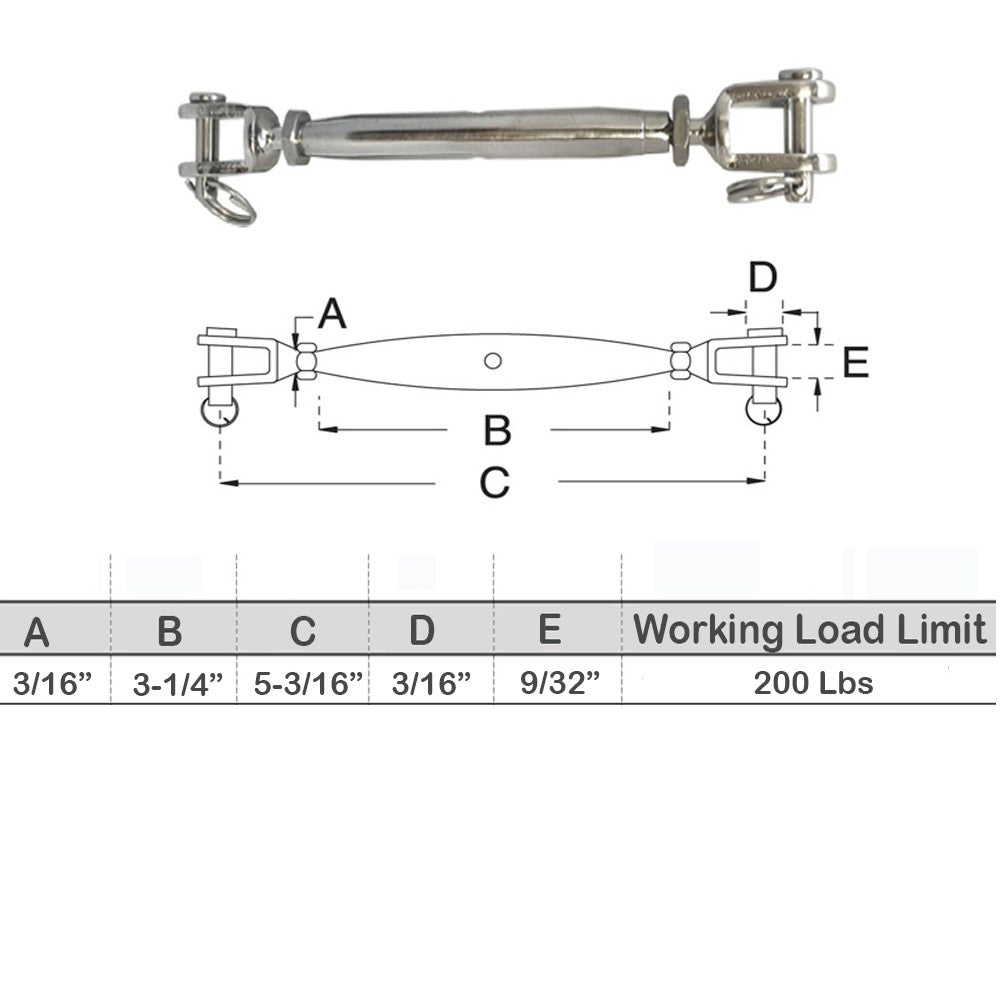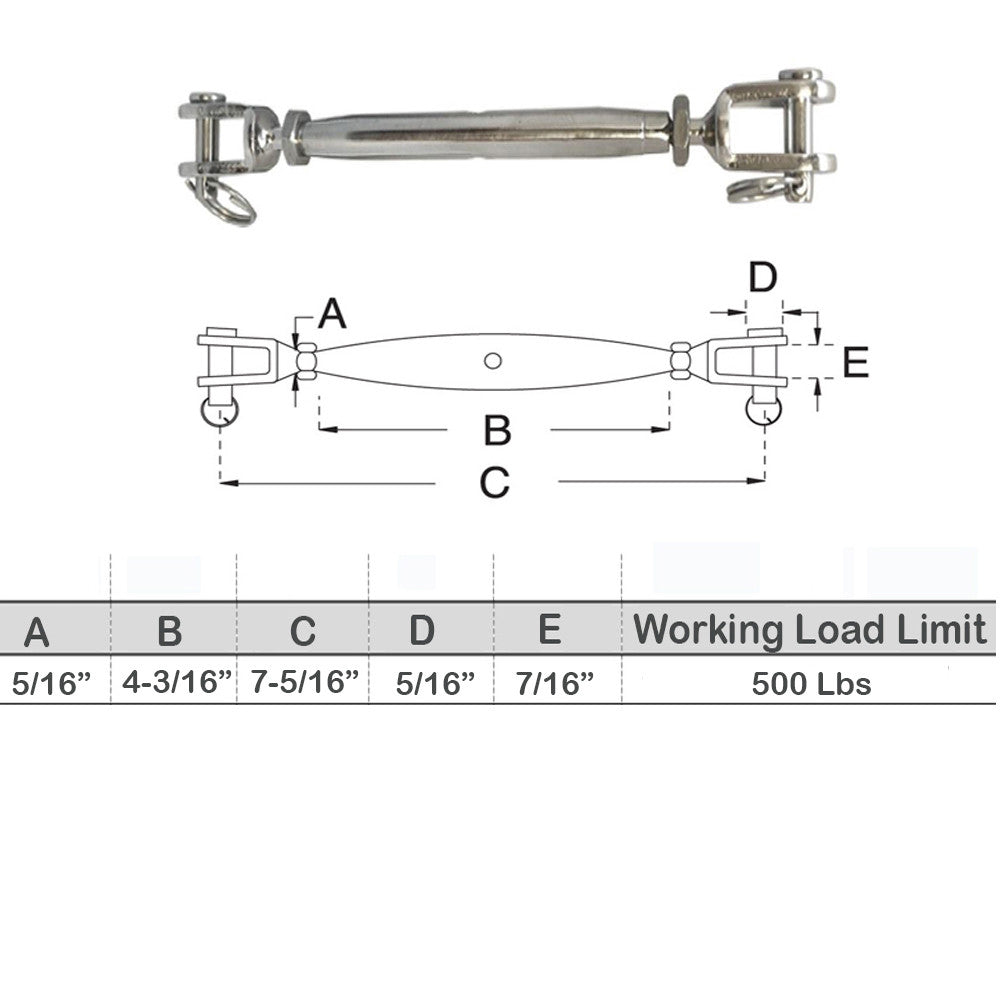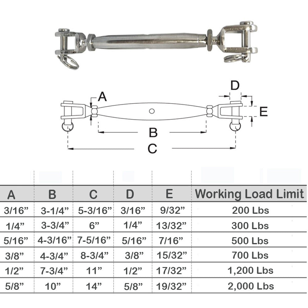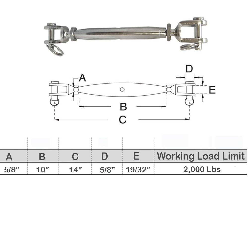 T316 Stainless Steel Closed Body Turnbuckle Jaw Jaw