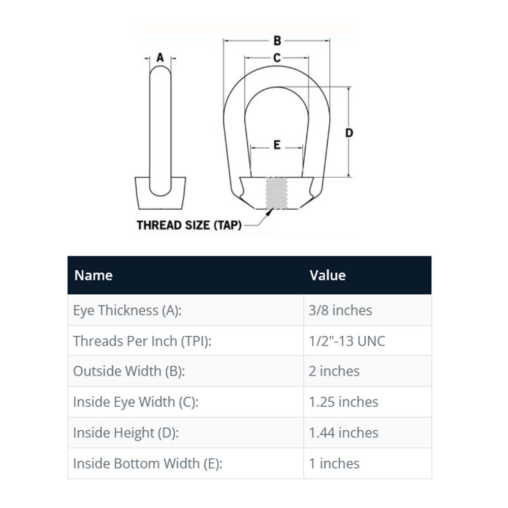 2 Pc 3/8" Hot Dipped Galvanized Eye Nut with 1/2"-13 UNC Tap 2,250 Lbs WLL