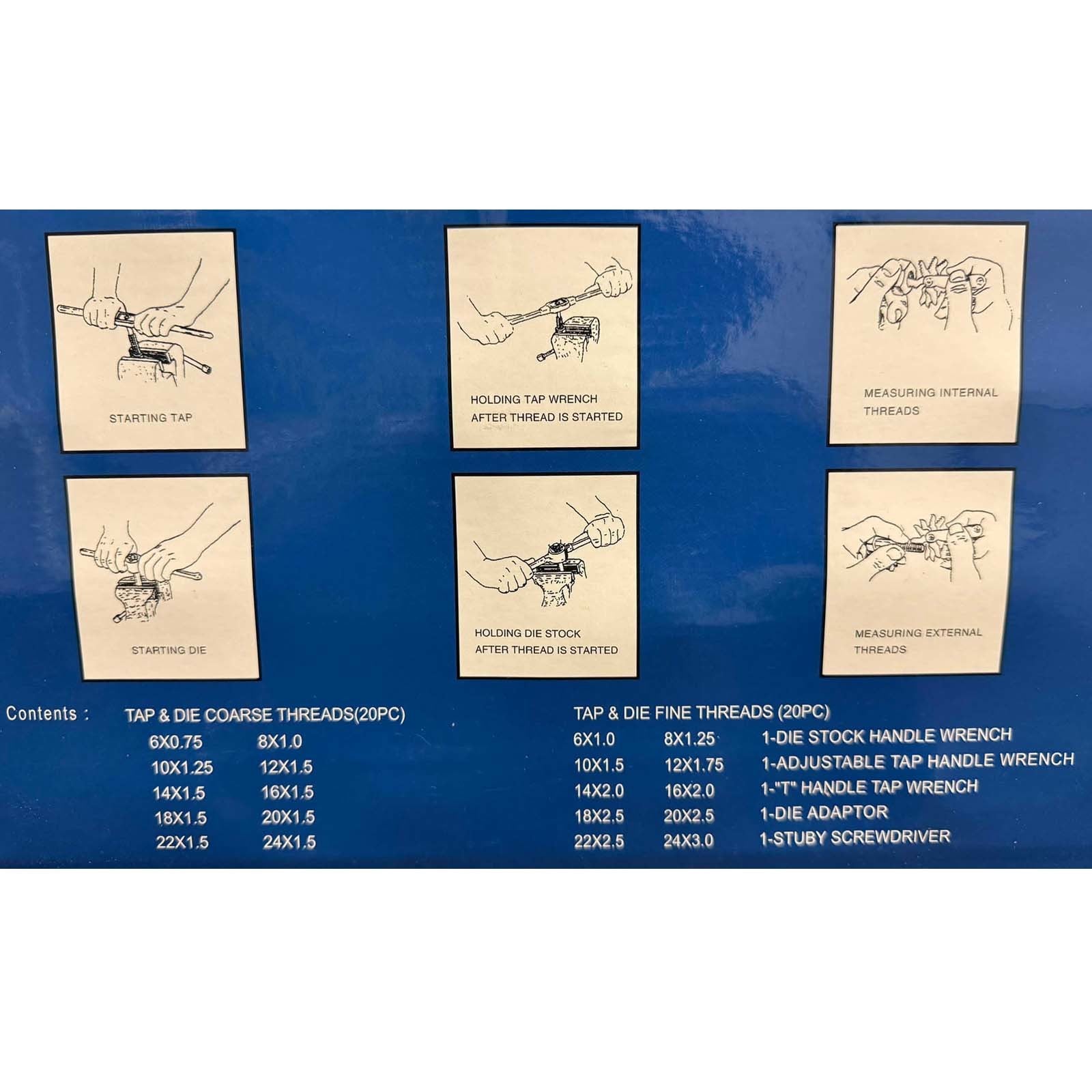 • Includes Both Fine & Coarse Threaded Taps & Dies in MM Sizing